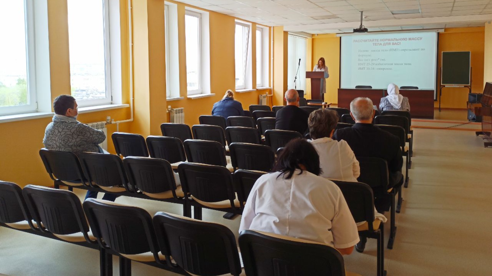 20 мая в поликлинике ГАУЗ «ЕЦРБ» состоялось очередное занятие в школе здоровья по борьбе с артериальной гипертонией. Фельдшер поликлиники Дёкина Гульназ Ильдаровна рассказала о факторах риска заболевания, которыми являются повышенные уровни кровяного давления в артериях, холестерина и глюкозы в крови, а также курение, недостаточное потребление овощей и фруктов, повышенный вес, ожирение и физическая инертность. Фельдшер поделилась знаниями, как же можно помочь своему организму, выполняя небольшие правила. Так, при повышенном артериальном давлении, ежедневно в рацион нужно включать 400-500 грамм некрахмалистых овощей и зелени, рекомендуется 2 раза в неделю употреблять красное мясо, а также не стоит забывать о водном балансе человека и принимать 1,5-2 литра воды. Рекомендуется в день проходить по 10 тысяч шагов и не забывать про хороший сон.