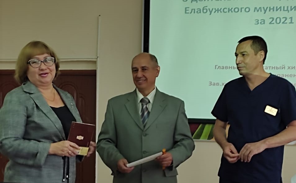 Также сегодня торжественно проводили старшую медицинскую сестру организационно-методического кабинета Плеханову Татьяну Александровну. Главный врач Елабужской ЦРБ Рамиль Рафхатович выразил благодарность Татьяне Александровне за многолетний добросовестный труд в области здравоохранения. Коллеги тепло поблагодарили Татьяну Александровну за многолетний плодотворный труд, пожелали ей крепкого здоровья, вручили цветы и памятные подарки.