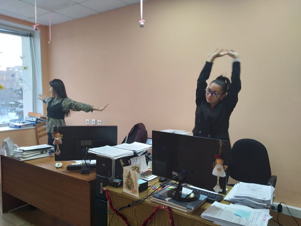 Рузия Шигапова – техник ПТО: «Такие физические «пятиминутки» помогают нам: и передохнуть, и настроиться на работу с новыми силами. Как будто второе дыхание открывается. Мы работаем за компьютером, поэтому после каждого часа стараемся еще и гимнастику для глаз делать. Тоже помогает».