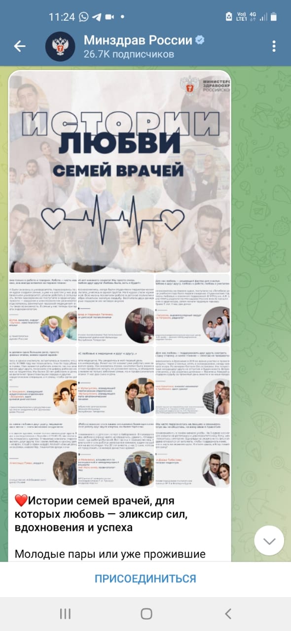 Накануне на сайте Минздрава РФ была опубликована подборка из интересных семейных историй врачей, приуроченная ко дню влюбленных. Посты и материалы для этой рубрики были присланы со всей страны. Из Татарстана в том числе. Из огромного количества присланных сообщений авторы идеи выбрали всего 9 историй.