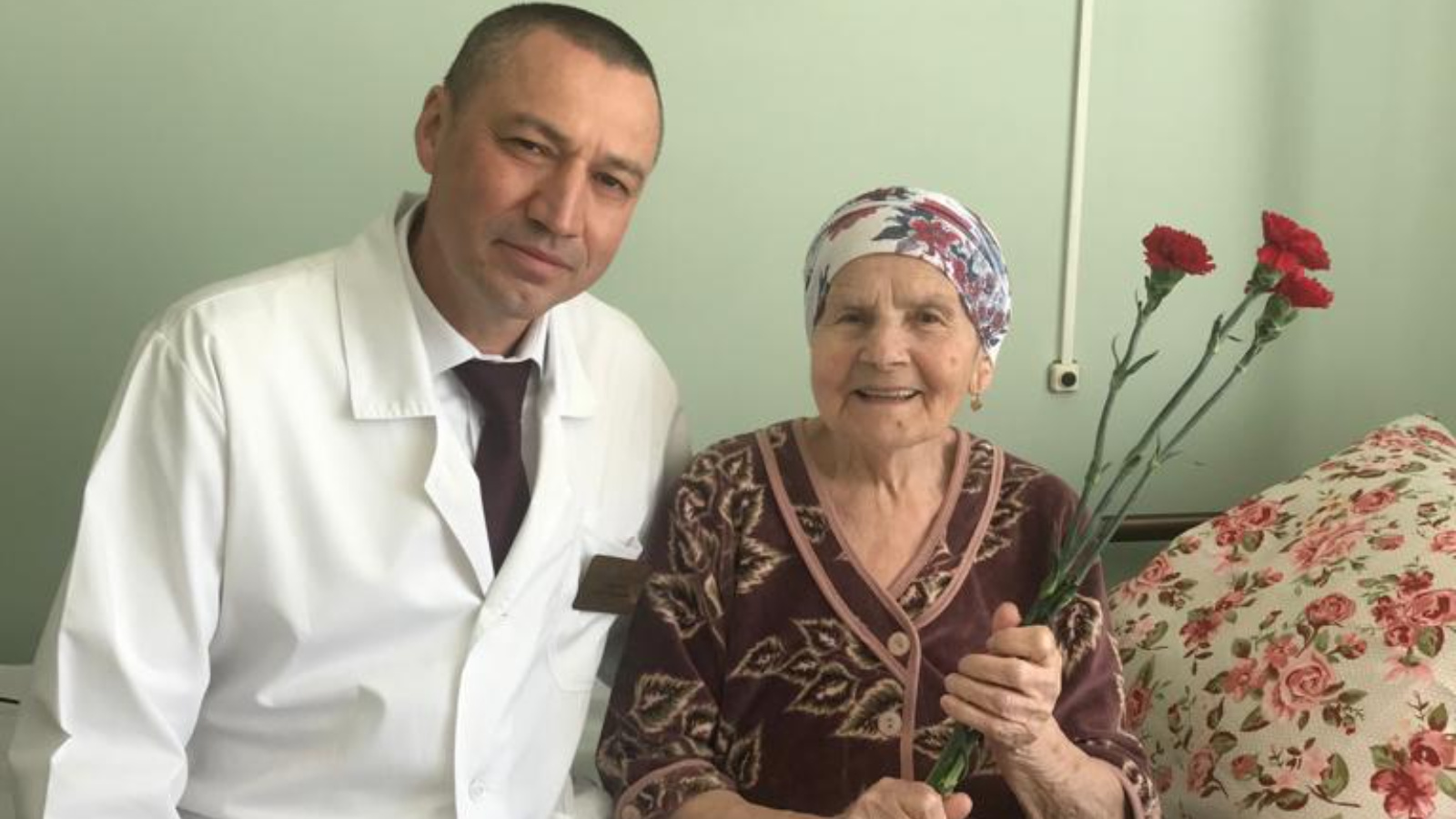Рамиль Сафаров утром в День Победы навестил почтенную пациентку, которая сейчас находится в Елабужской ЦРБ и проходит здесь лечение в хирургическом отделении. Главный врач выразил свои слова уважения и благодарности 92- летней Бастиме Миргаевне Сагидуллиной за ратный труд в годы Великой Отечественной войны.