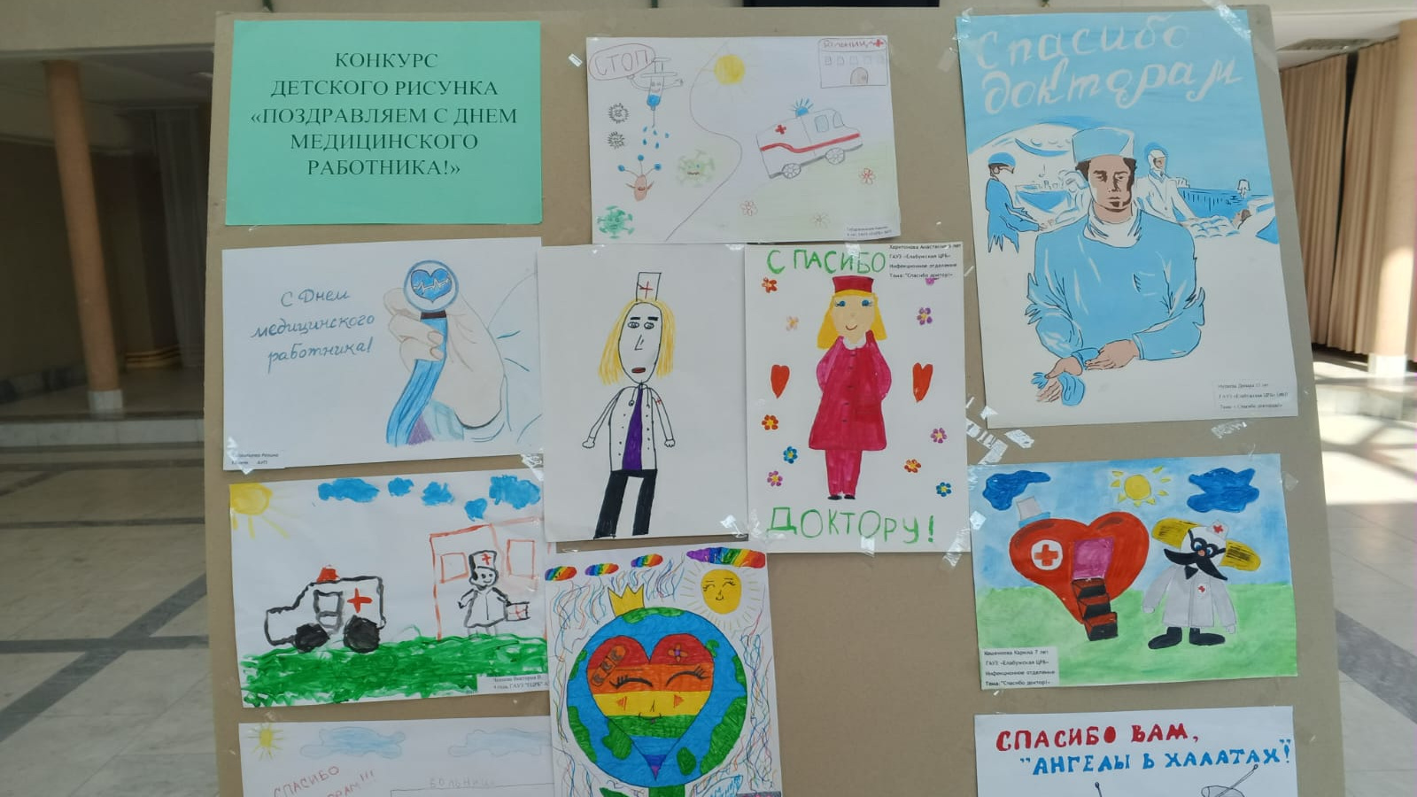 Все участники конкурса получили памятные подарки от профкома Елабужской ЦРБ. Работы юных творцов украсили фойе ДК во время торжественного празднования Дня медицинского работника.