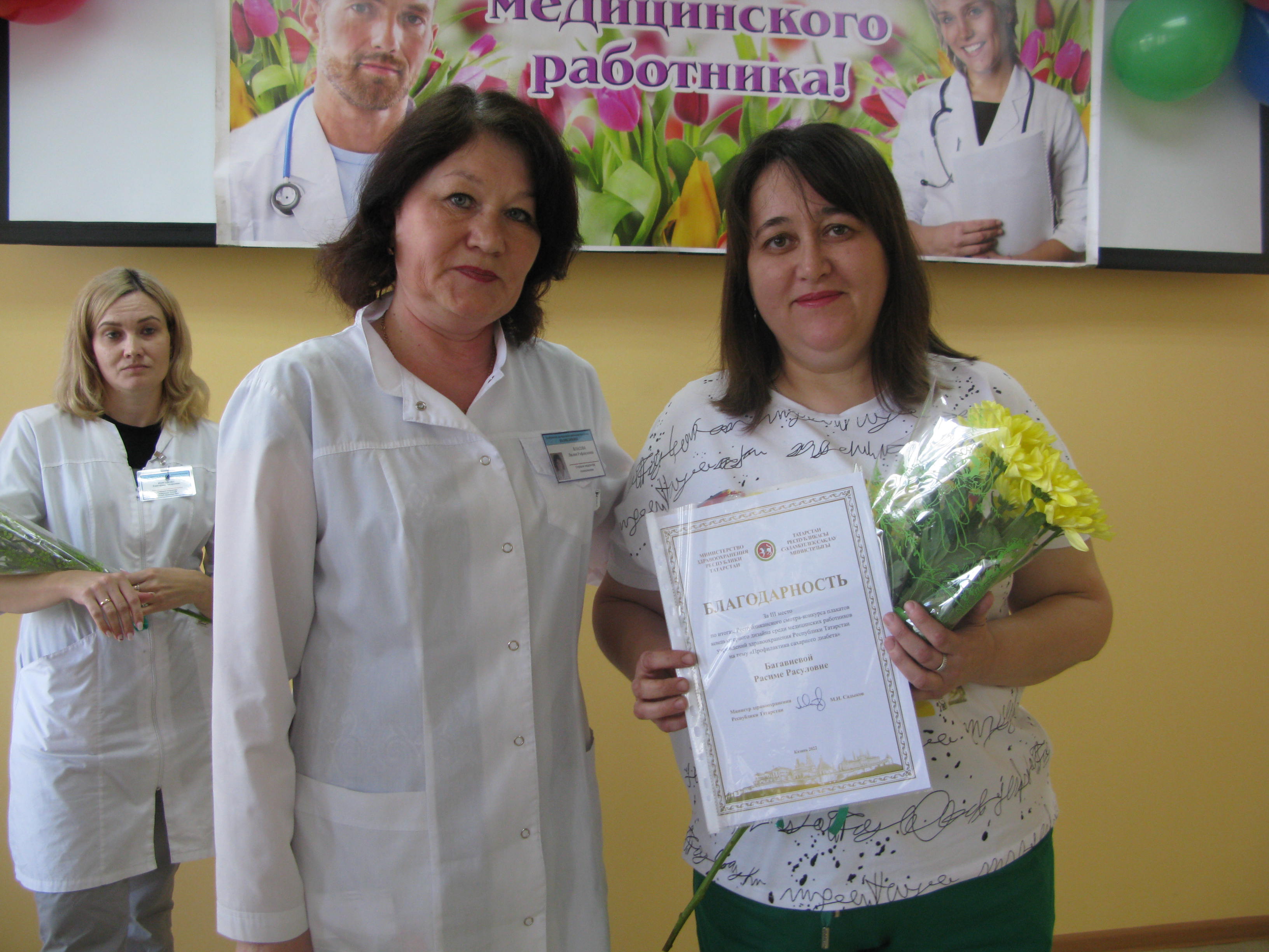 Анастасия Заика: «Хочется еще раз поздравить всех своих коллег с нашим профессиональным праздником. Пожелать всем мира, спокойствия и благополучия. От имени профкома поликлиники и от себя лично хочу поблагодарить наших друзей, которые поддерживают нас и с готовностью откликаются на все наши просьбы. В частности, благодарю за сотрудничество МЦ «Барс» и волонтеров из Елабужского медицинского колледжа».