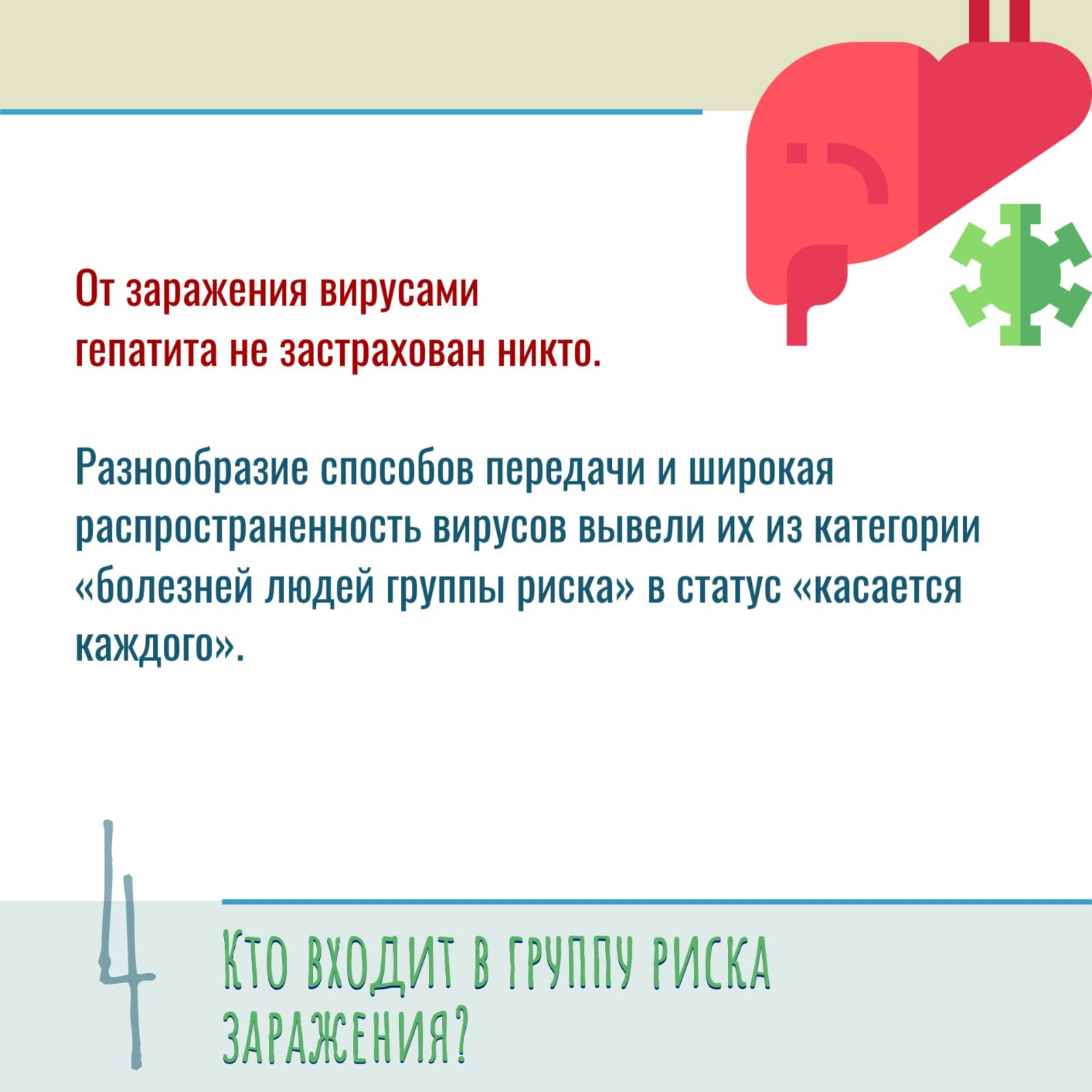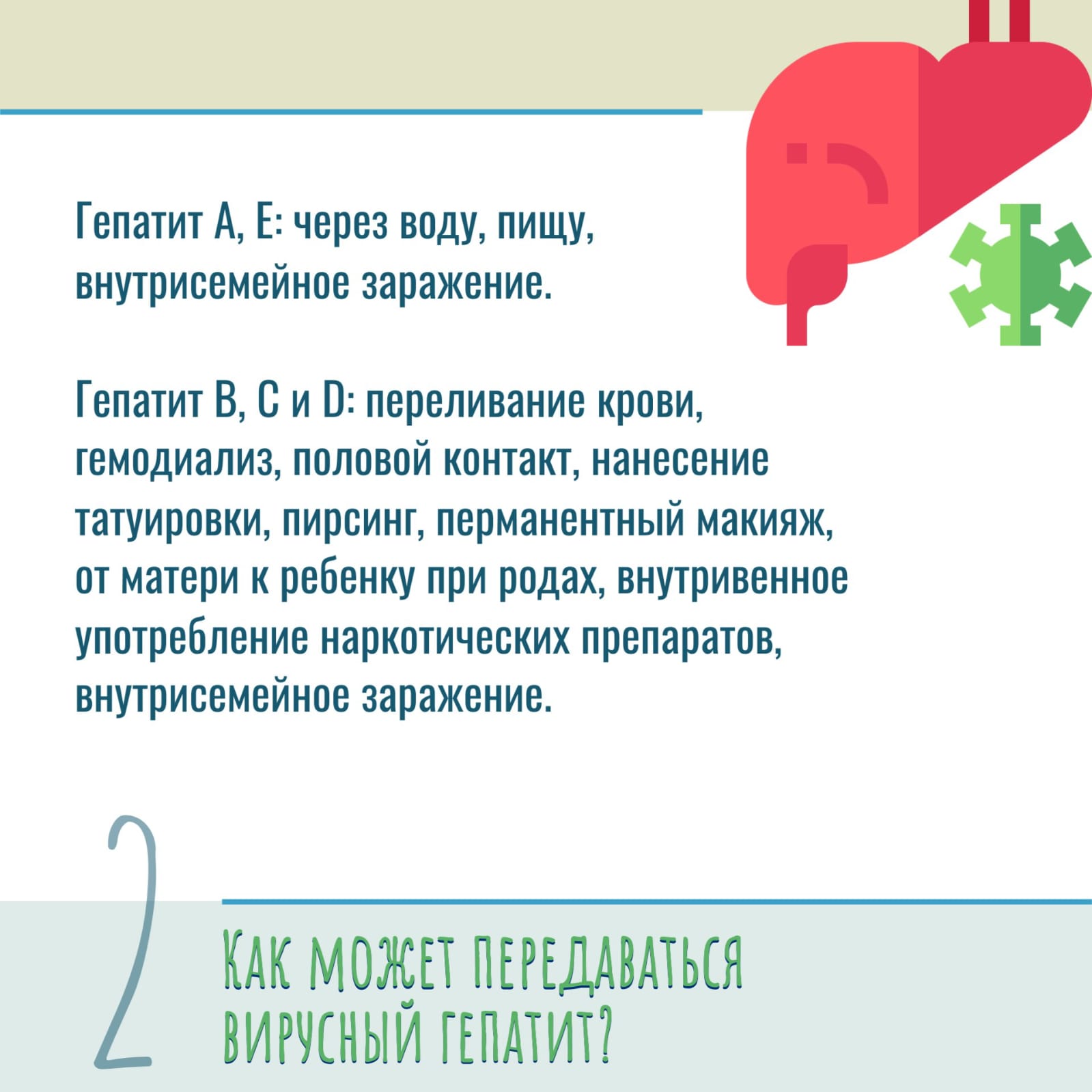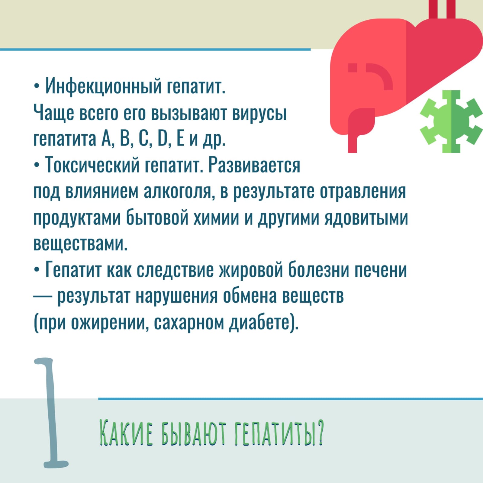 Гепатит – это воспалительный процесс, протекающий в печени, который приводит к разрушению ее клеток и нарушению функции органа. Подробнее об этой патологии — в карточках, подготовленных совместно со специалистами Республиканского центра общественного здоровья и медицинской профилактики.
