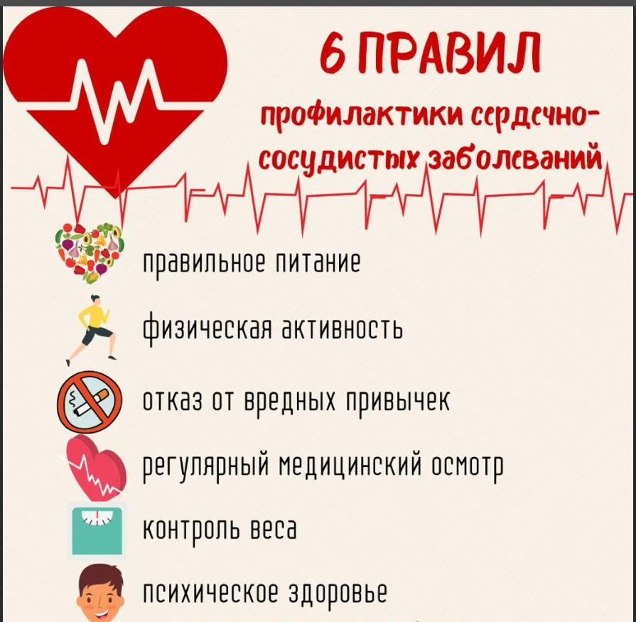 Есть определенные показатели, к которым должны стремиться люди, чтобы оставаться здоровыми, говорит кардиолог: «отказ от курения, адекватная физическая активность – как минимум 30 минут в день, здоровое питание, контроль веса, контроль артериального давления (ниже 140/80 мм), контроль холестерина крови (ниже 5 ммоль/л), контроль сахара крови, избегать стрессовых ситуаций.