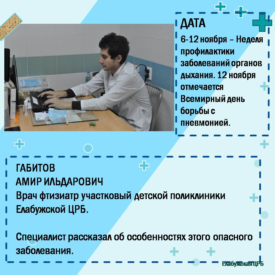 Как не пропустить развитие этого недуга? Каковы симптомы и осложнения? Что включает в себя профилактика пневмонии, на эти и другие вопросы ответил Амир Габитов, врач фтизиатр детской поликлиники Елабужской ЦРБ.