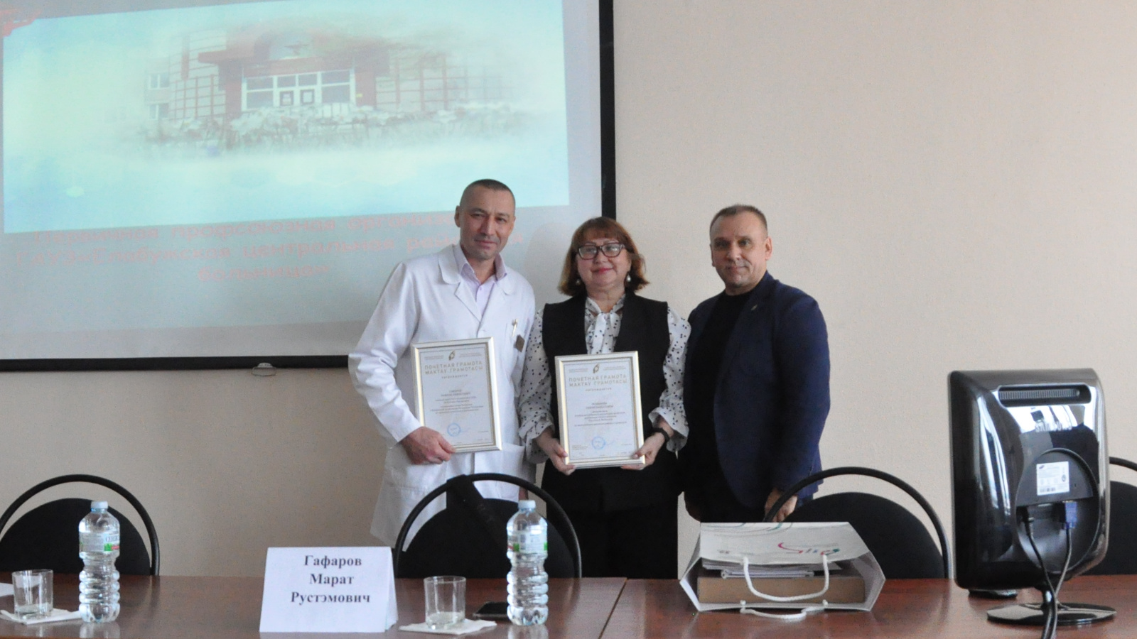Марат Рустемович вручил Рамилю Сафарову, главному врачу Елабужской ЦРБ Почетную грамоту за активное сотрудничество с Федерацией профсоюзов РТ. Румия Резвякова также была удостоена республиканской награды за многолетнюю активную работу в профсоюзном комитете.