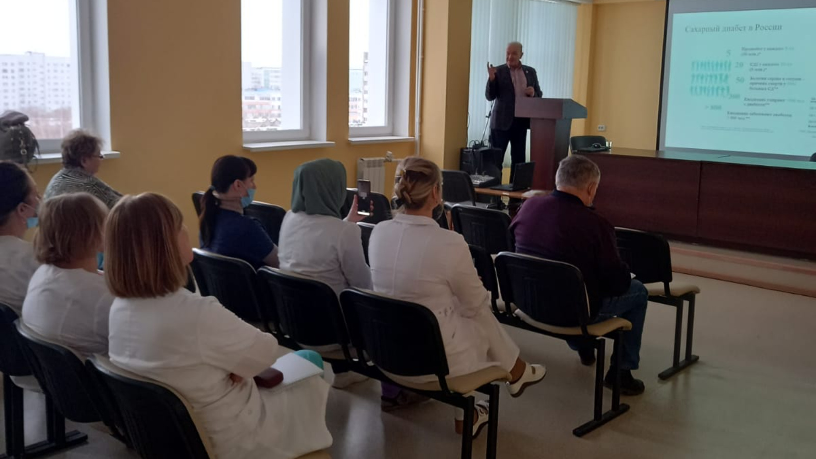 Образовательное мероприятие прошло в поликлинике Елабужской ЦРБ. Александр Поздняк – эндокринолог, со стажем 39 лет, профессор, доктор медицинских наук из столицы Республики рассказал елабужским специалистам о современных подходах к лечению сахарного диабета II типа и его осложнениях.