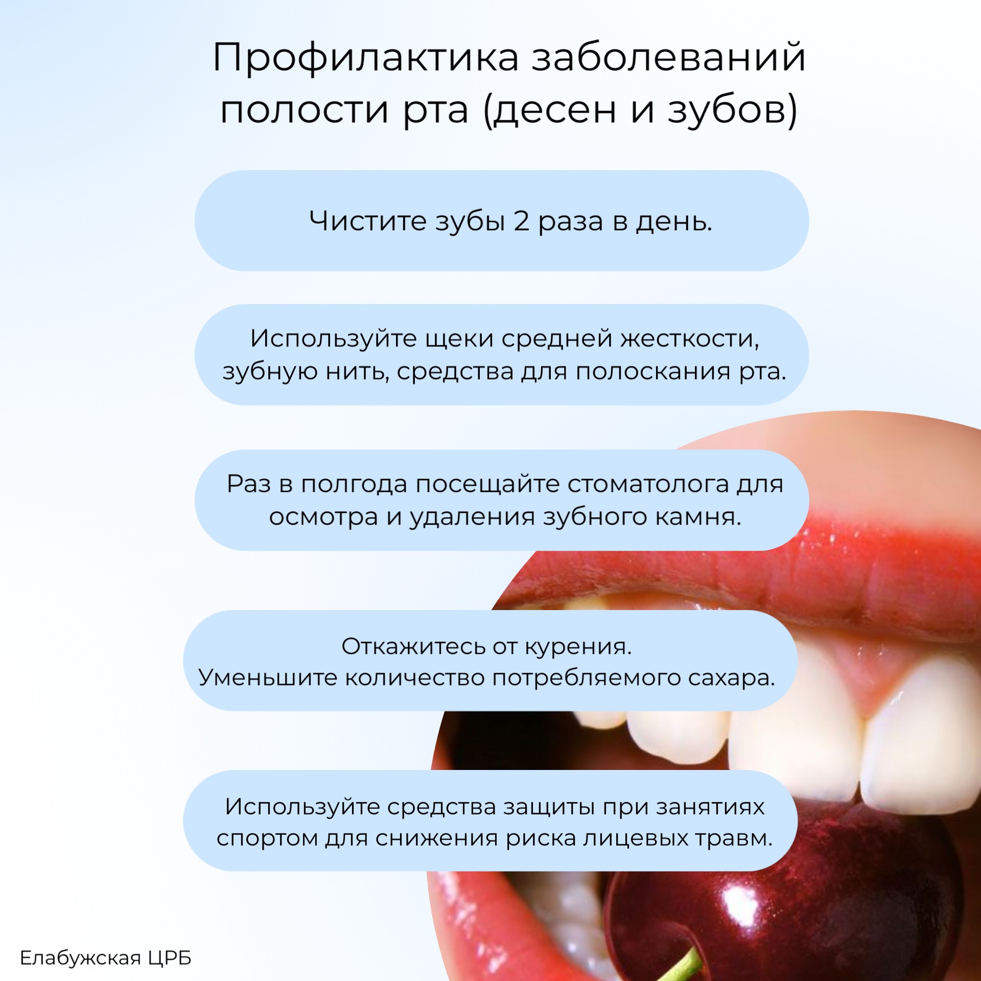 С 5 по 11 февраля Минздрав России проводит неделю ответственного отношения к здоровью полости рта. Здоровье полости рта начинается с чистых зубов и регулярного посещения врача-стоматолога.