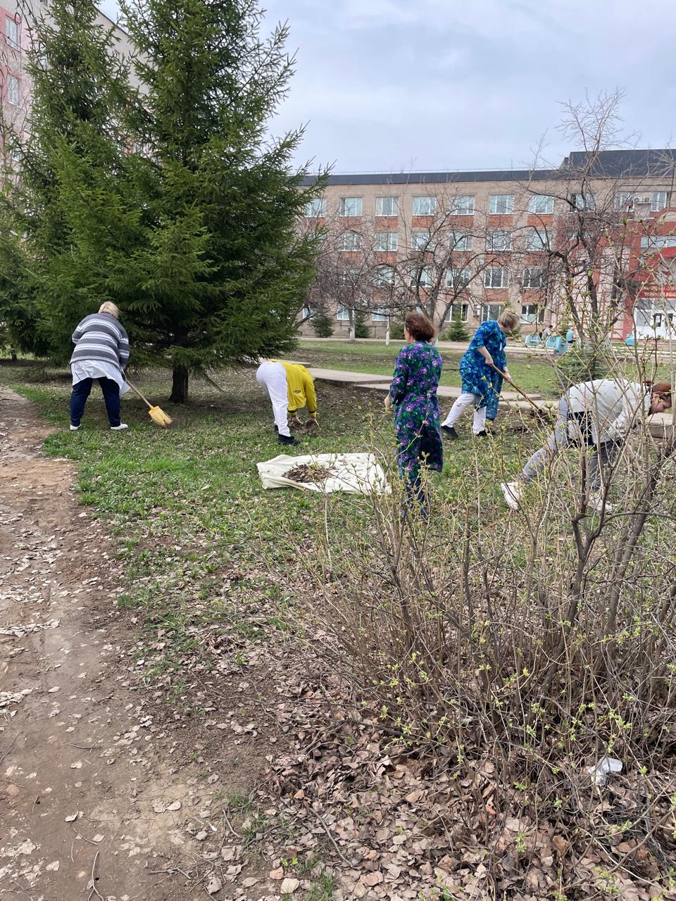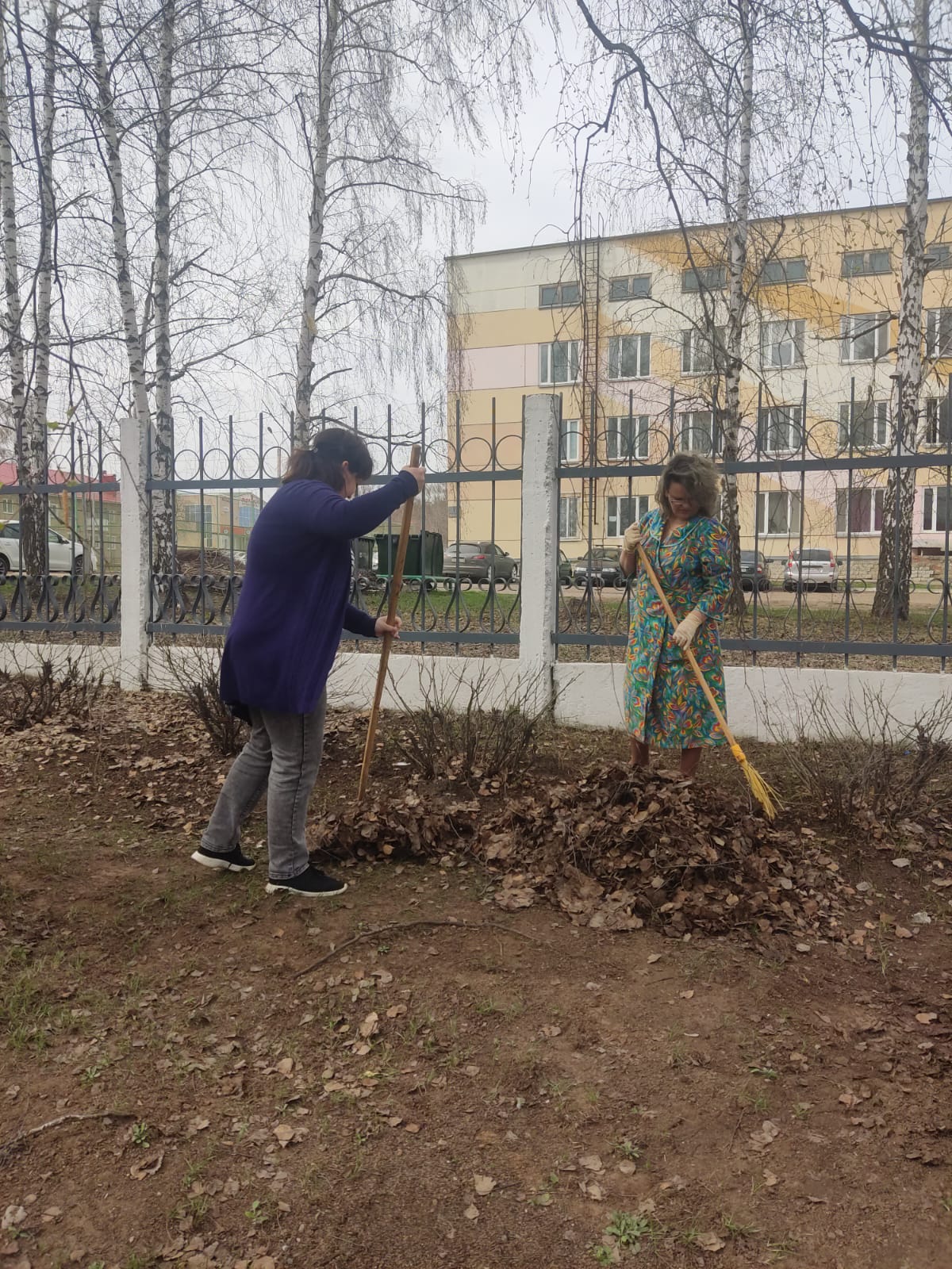 На уборку выходят большими и дружными командами: собирают прошлогоднюю листву, спиливают ветки, убирают мусор, некоторые уже высаживают цветы на клумбах, устроили генеральную уборку в кабинетах.
