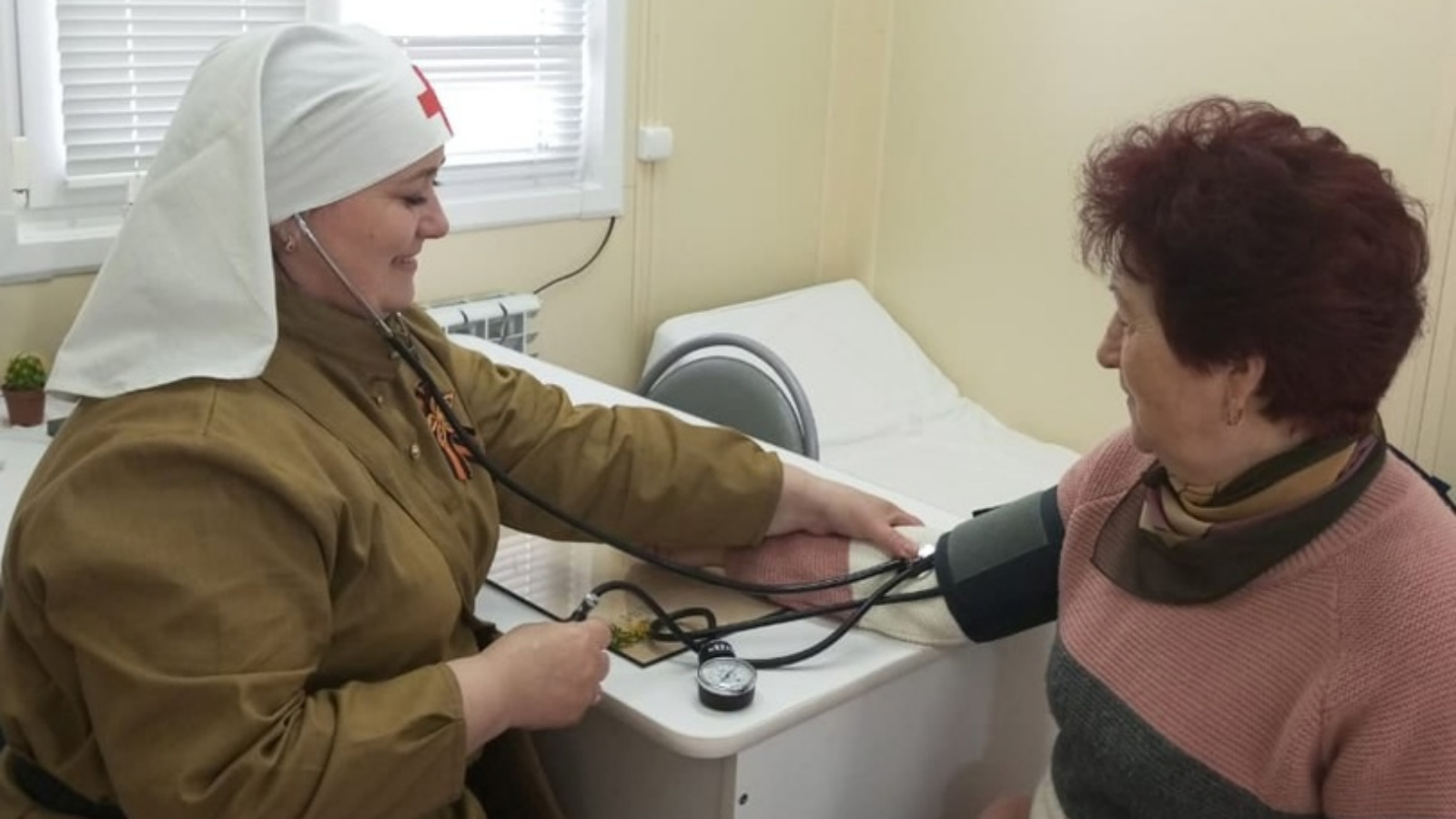 В преддверии Дня Победы Любовь Соловьева - заведующая, фельдшер ФАПа села Новая Анзирка Елабужского района вела приём пациентов в военной форме.