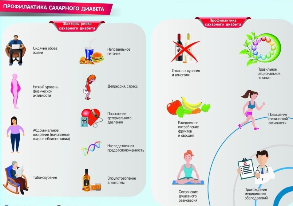 Для предотвращения появления сахарного диабета, специалисты рекомендуют придерживаться профилактических правил: