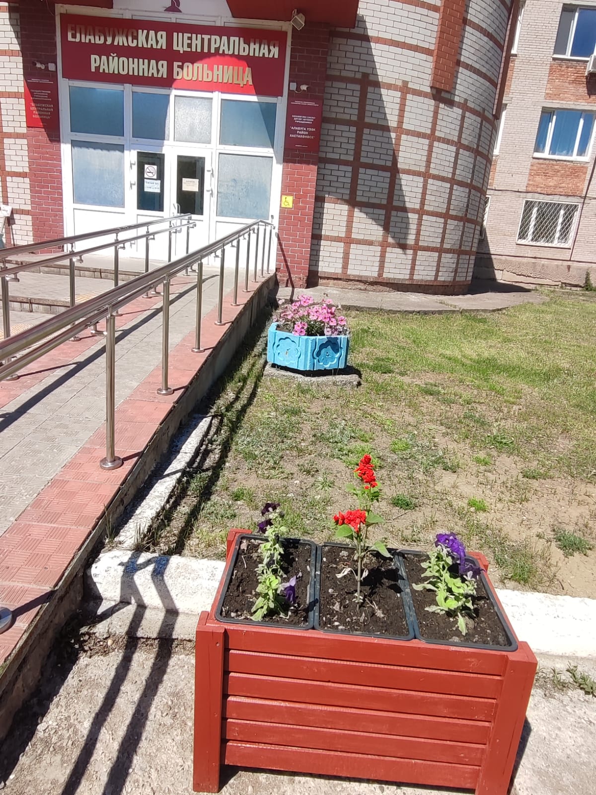 Сегодня на территории Елабужской ЦРБ сотрудниками были высажены цветы: 324 петуньи и 108 сальвий.