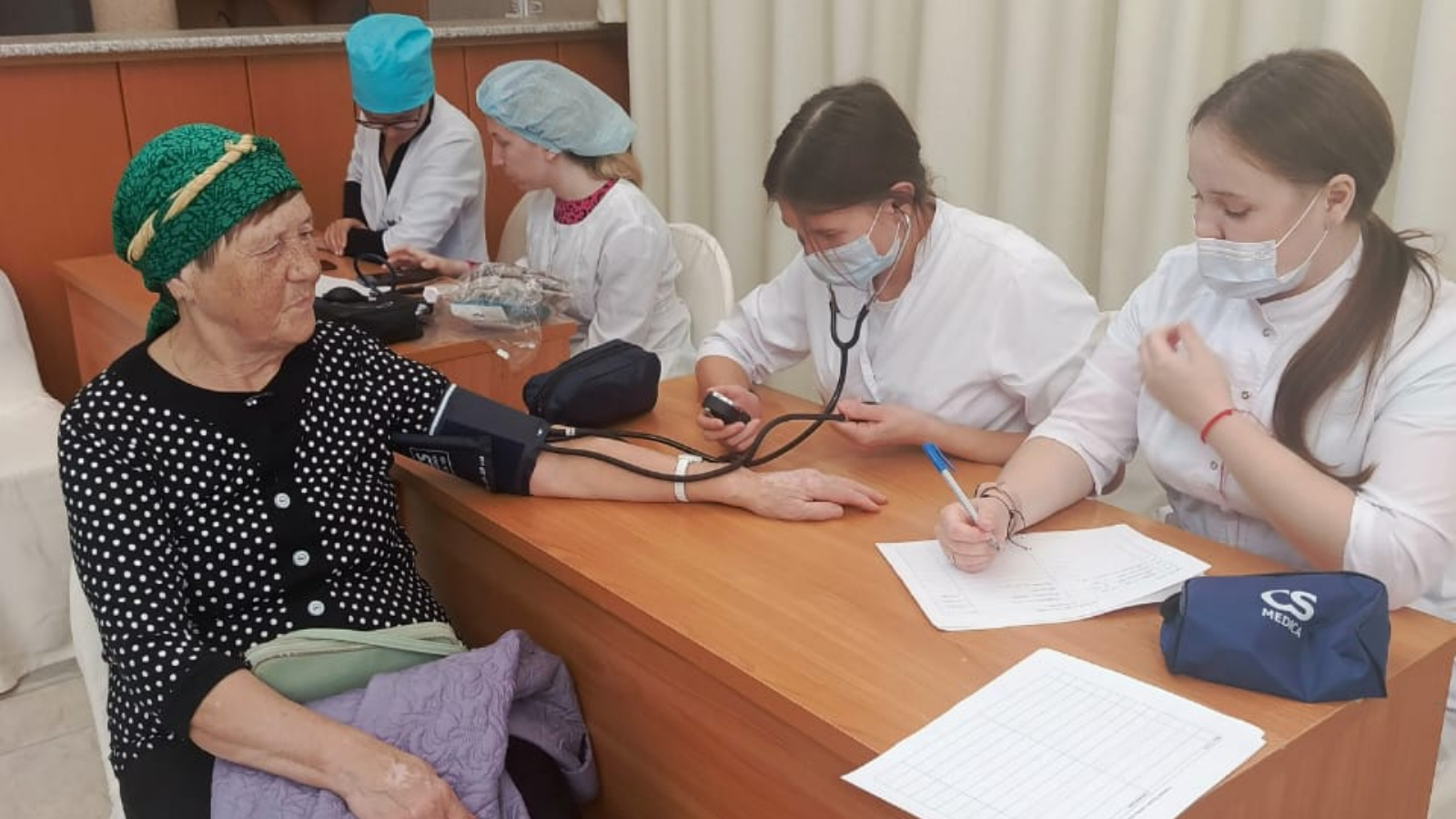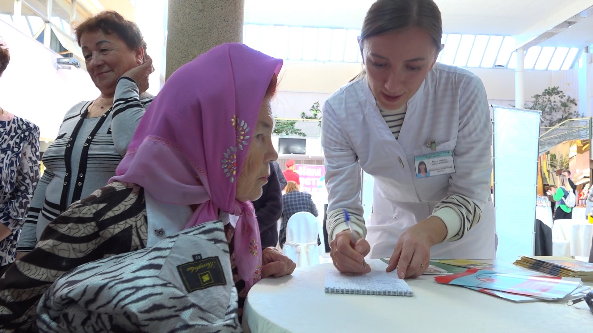 В течение часа медработники 52 бабушкам и дедушкам измерили давление, еще 25 проверили уровень сахара, вакцинацию от гриппа получили 11 человек.