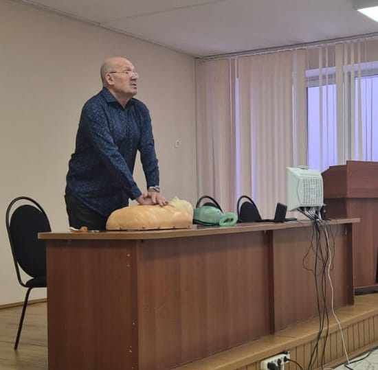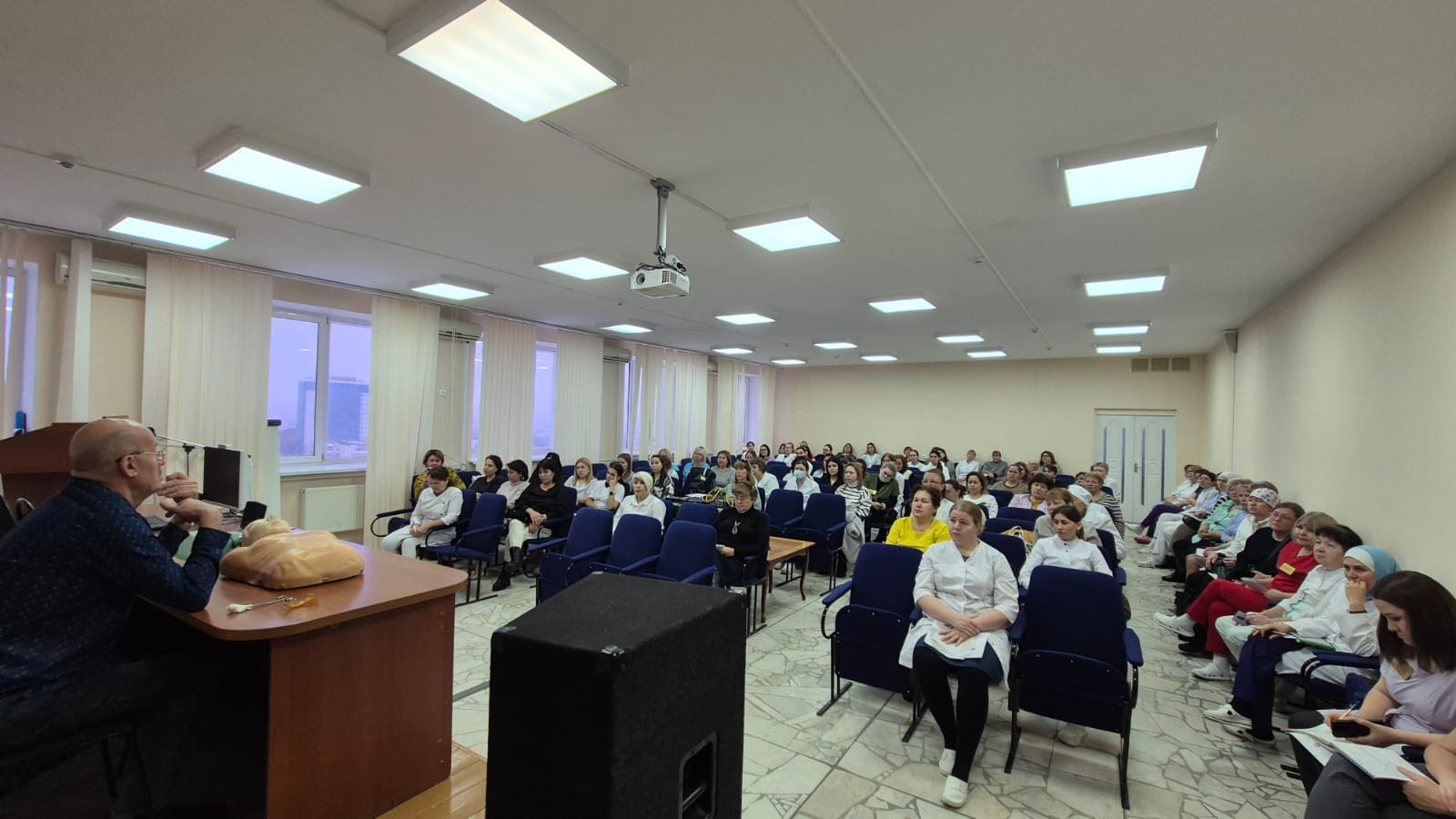 В актовом зале Елабужской ЦРБ прошло занятие по оказанию неотложной медицинской помощи. Для персонала детской поликлиники и ФАПов обучение по оказанию неотложной помощи детям и взрослым провел заведующий отделением, врач станции скорой медицинской помощи Рамиль Ибрагимов. Врач рассказал о правилах поведения при сердечно-легочной реанимации, анафилактическом шоке, обморочном состоянии, судорогах.