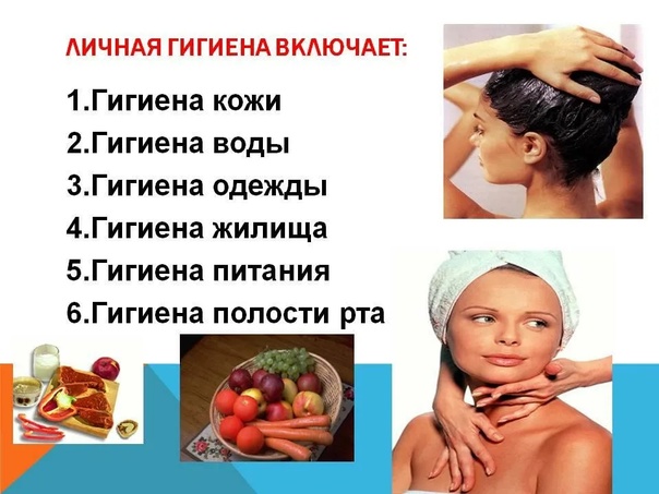 Она включает в себя режим условий труда и отдыха, рациональное питание, соблюдение правил ухода за телом, применение гигиенических средств и др.