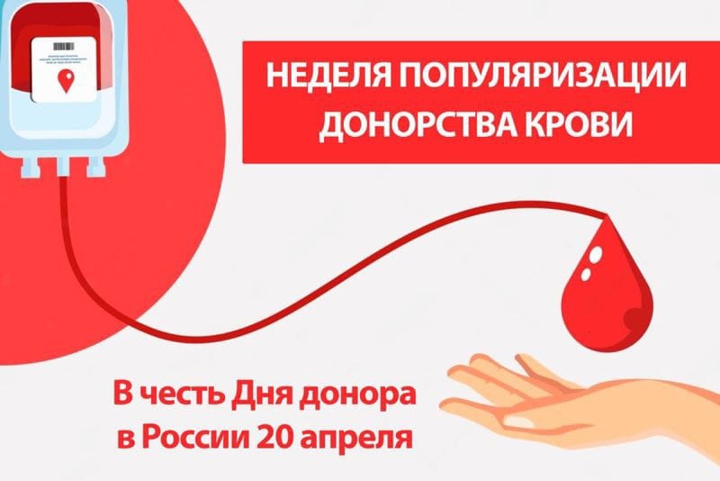 С 14 по 20 апреля в России проходит Неделя популяризации донорства крови и костного мозга (в честь Дня донора в России 20 апреля).
