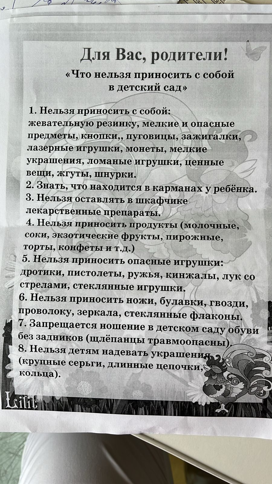 Но забота о здоровье – это общая ответственность! Для родителей и воспитателей были переданы специальные памятки, в которых четко прописано, что нельзя приносить с собой в детский сад определенные продукты или предметы, которые могут быть вредны для здоровья малышей.