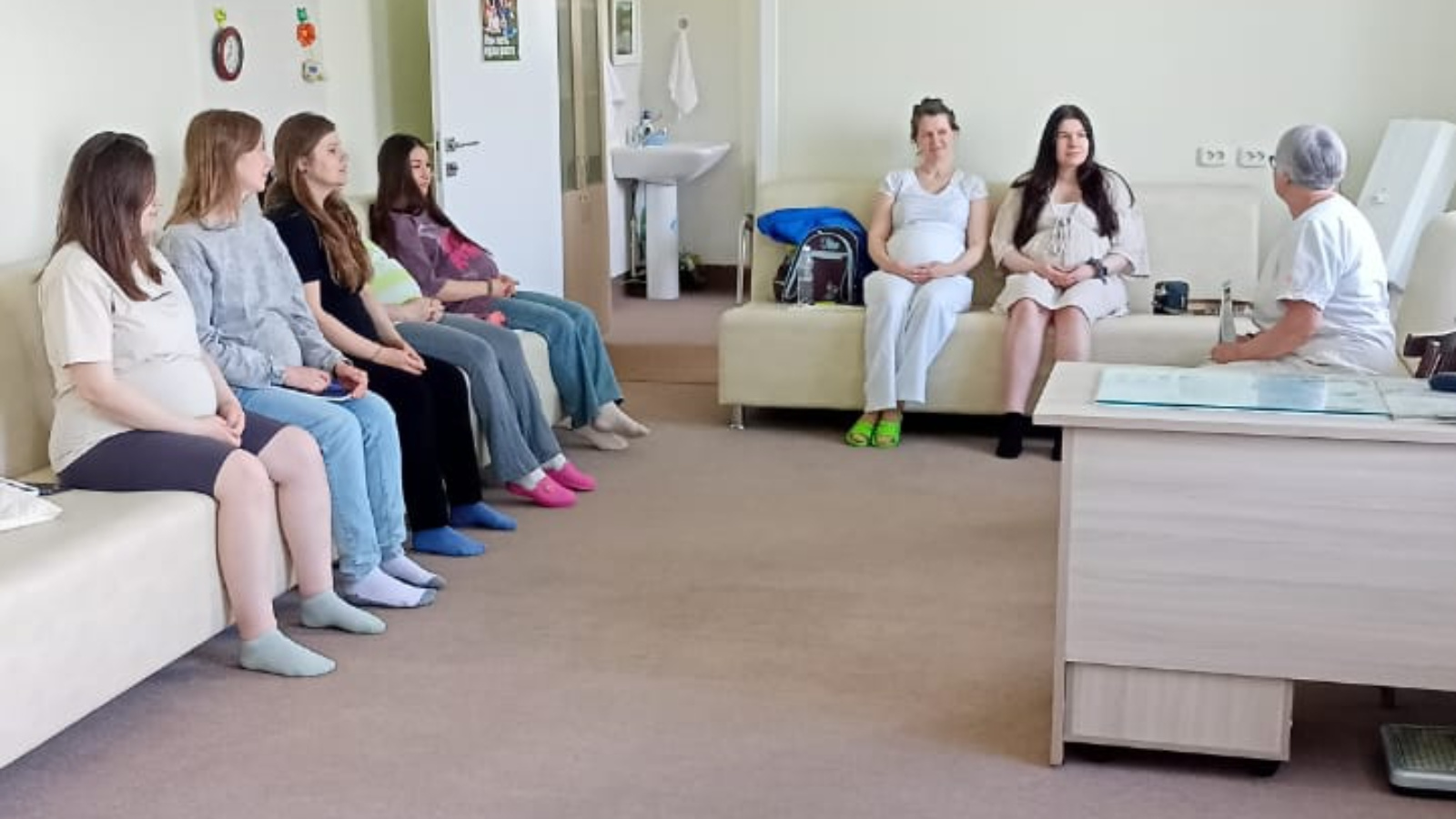 Акушерка Елабужской ЦРБ Шарифуллина Елена Анатольевна, проводя беседу с беременными женщинами на тему питания в период беременности.