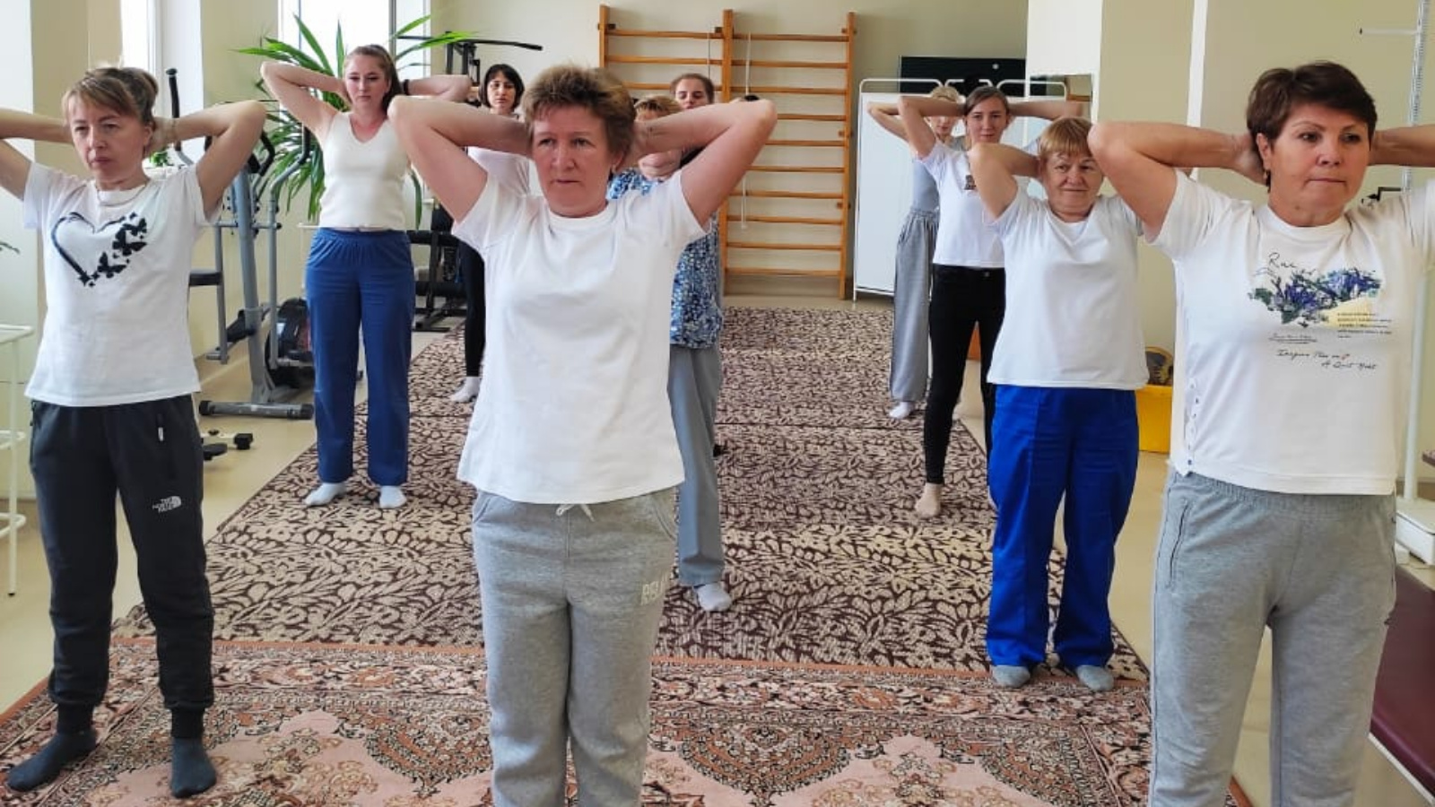 Ежедневно с 15:00 до 16:00 медработники занимаются лечебной физкультурой в зале ЛФК под чутким руководством методиста Гильмановой Нурии Галимзяновны.