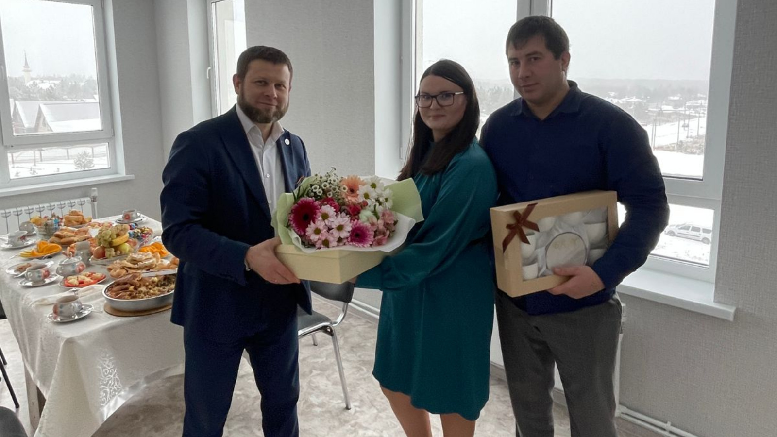 Глава Елабужского района Рустем Нуриев и главный врач ЕЦРБ Мансур Потеев лично поздравили Лилию в её новой квартире.