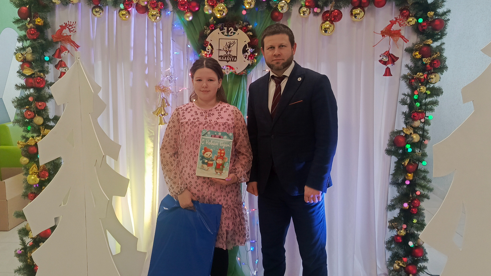 Мансур Алиевич лично встретился с Лизой, чтобы поздравить её с наступающим Новым годом, пожелав крепкого здоровья, успехов в учёбе и исполнения всех желаний. А затем вручил долгожданные подарки: увлекательную настольную игру «Магнитный бой» и, конечно же, большой сладкий набор, без которого не обходится ни один Новый год!