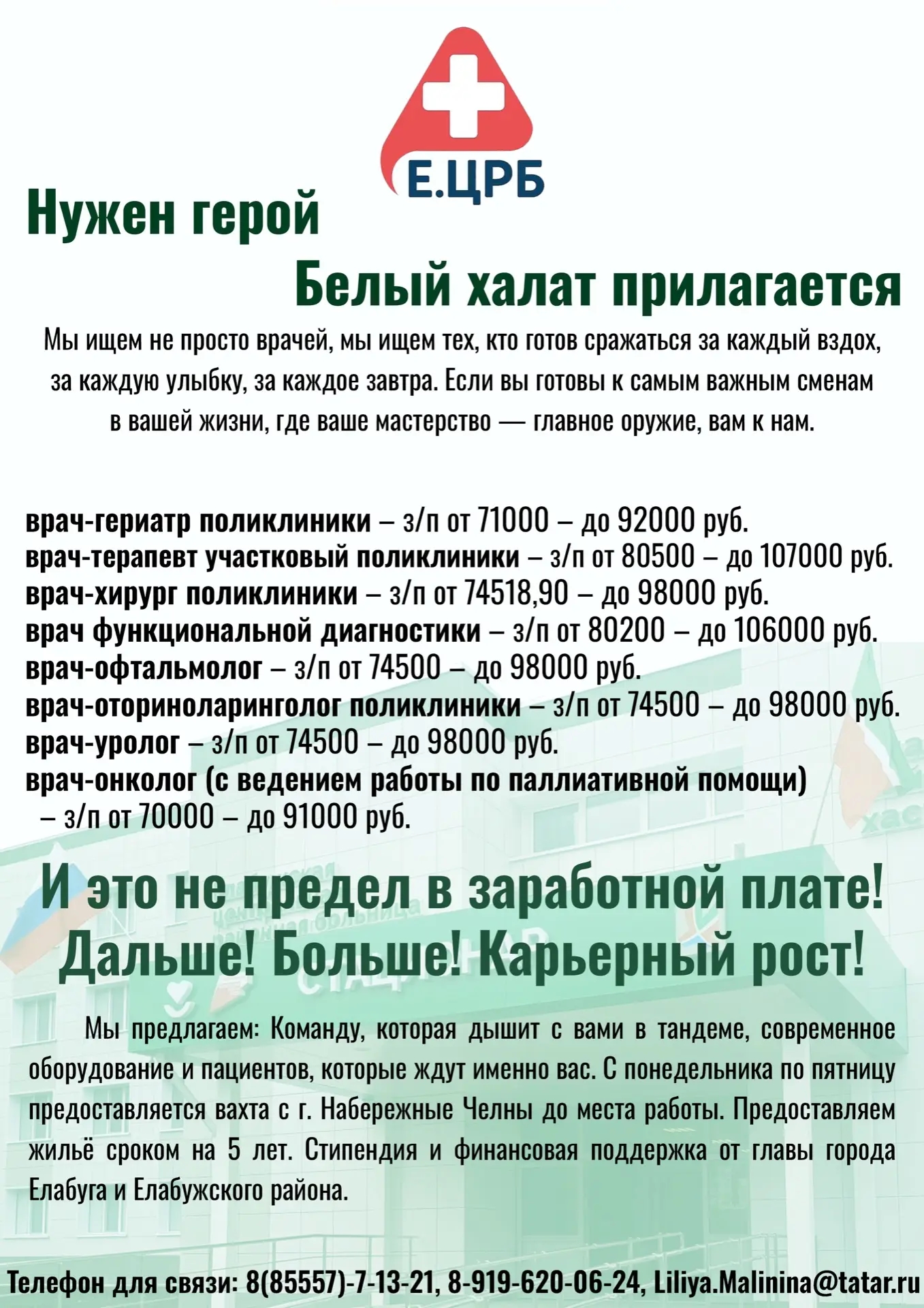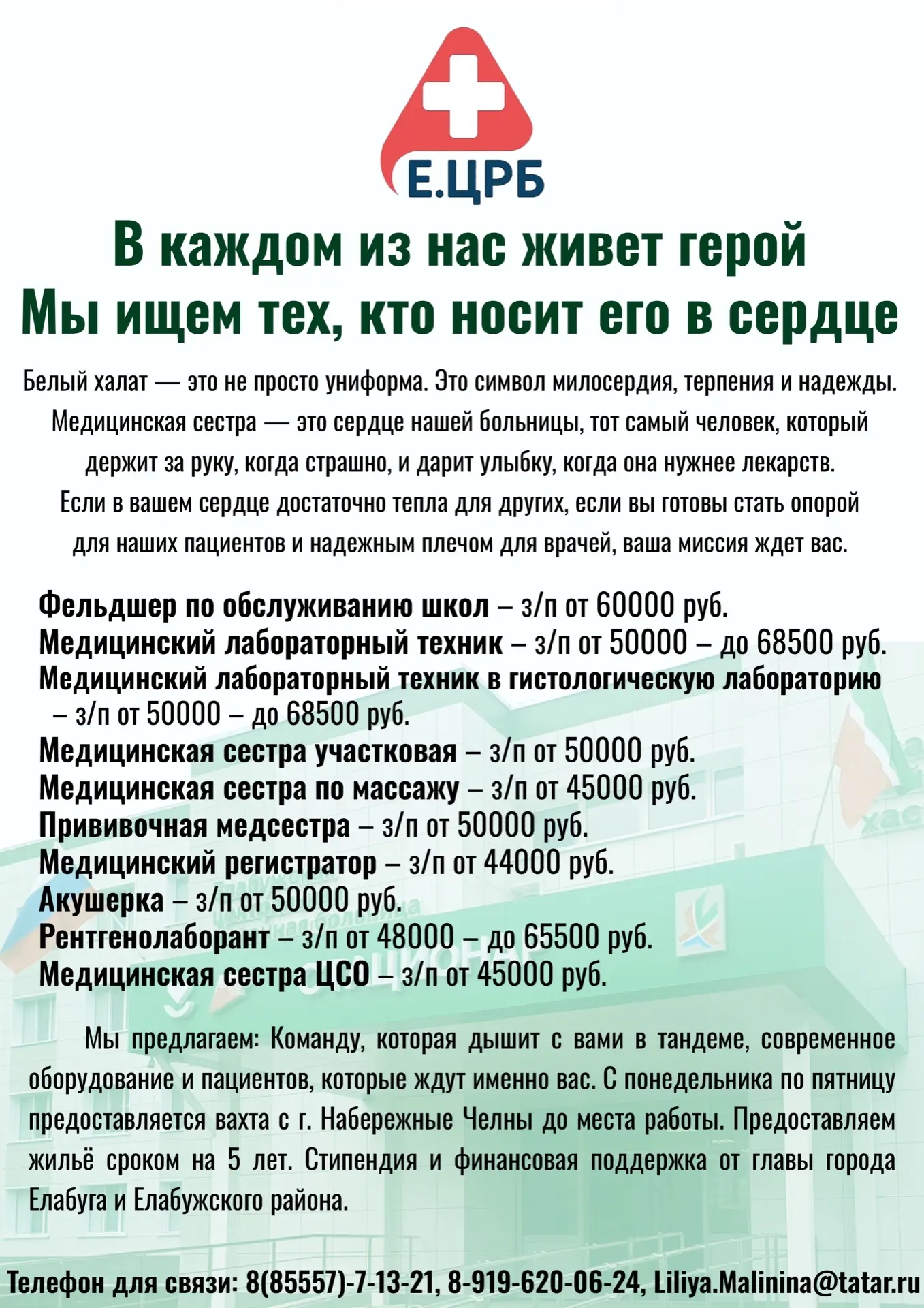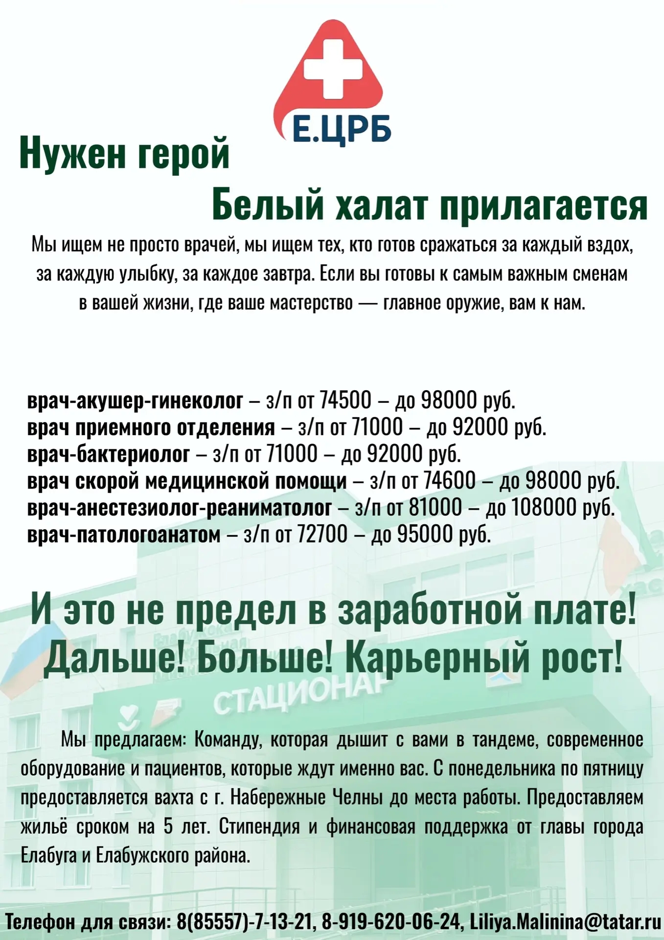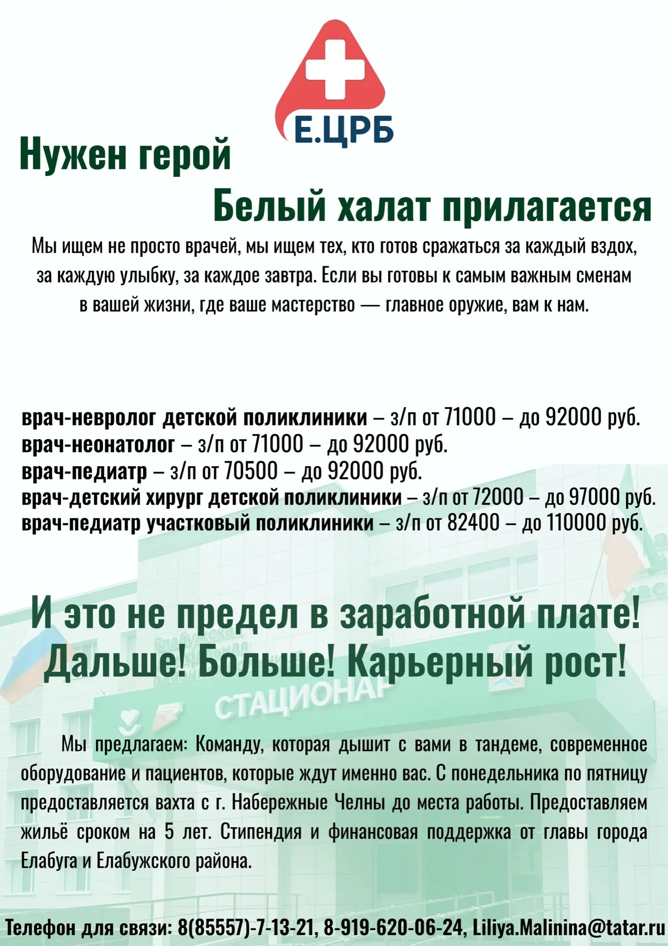 В дружную, сплоченную команду Елабужской ЦРБ требуются врачи и медсестры