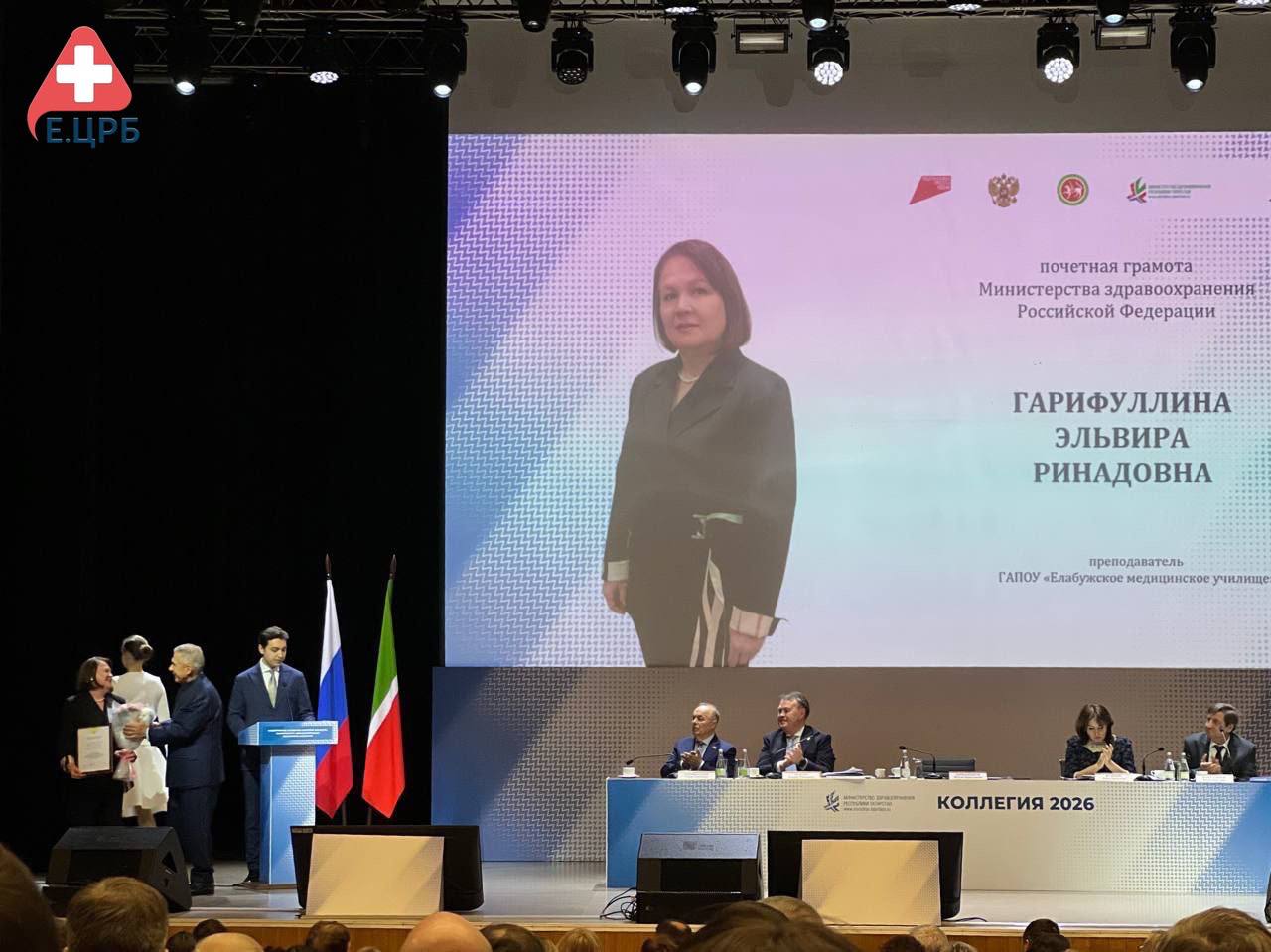 Отметим, Эльвира Ринадовна Гарифуллина, преподаватель Елабужского медицинского колледжа, получила из рук Раиса Республики Татарстан Почётную грамоту Министерства здравоохранения РФ за многолетний труд и вклад в подготовку медицинских кадров.
