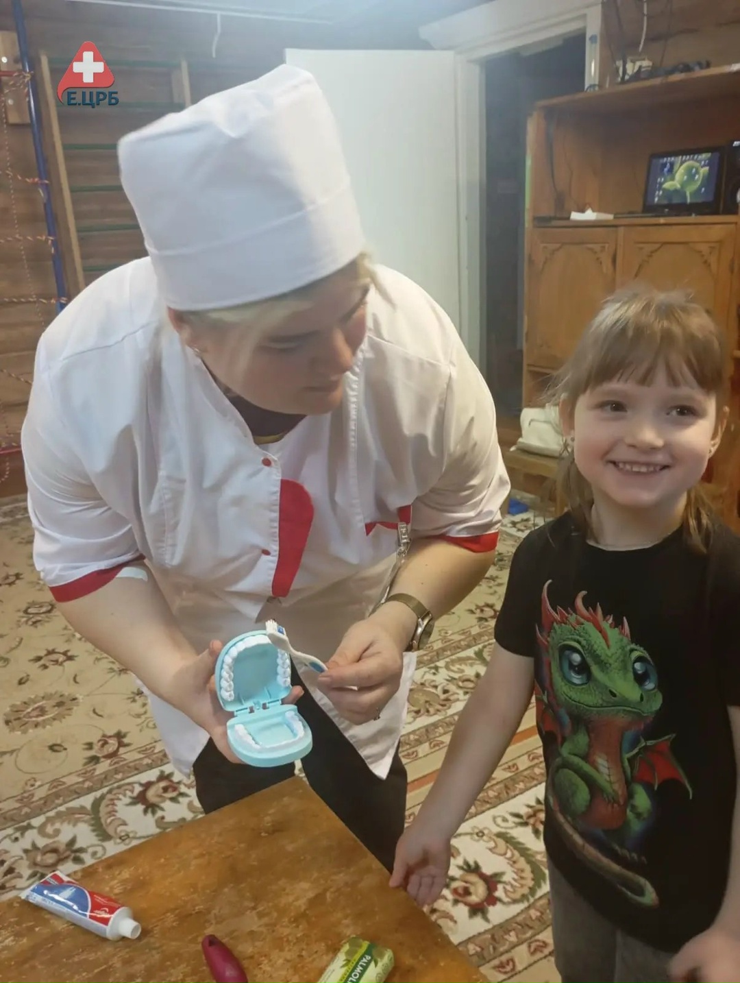 Сначала дети вместе с Ириной Сергеевной изучали красочные книги о стоматологическом здоровье, узнавая о микробах-сладкоежках и о том, как важно беречь зубки с самого детства. Самым интересным этапом стала практическая часть: вместо скучных лекций ребятам предложили стать «зубными мастерами». С помощью специального макета челюсти и учебной щетки каждый ребенок потренировался правильно вычищать налет, уделяя особое внимание шейкам зубов и другим труднодоступным участкам. Работа с таким манекеном позволила детям наглядно увидеть процесс очистки эмали и закрепить моторику движений, которую они теперь смогут применять дома. Подобные профилактические встречи помогают сформировать у детей поле